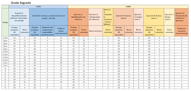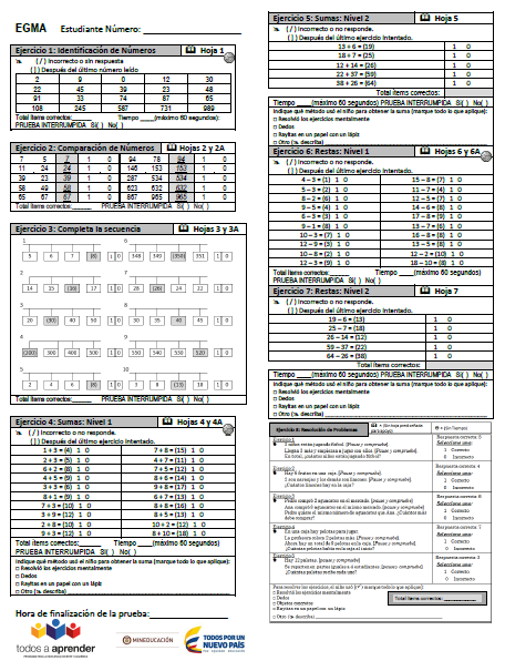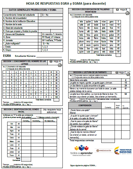 Hoja de Respuestas de las Pruebas EGRA Y EGMA